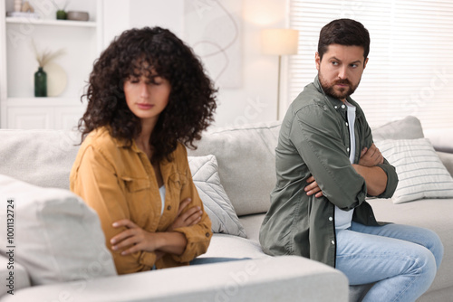 Obraz premium Couple having quarrel on sofa at home, selective focus. Relationship problems