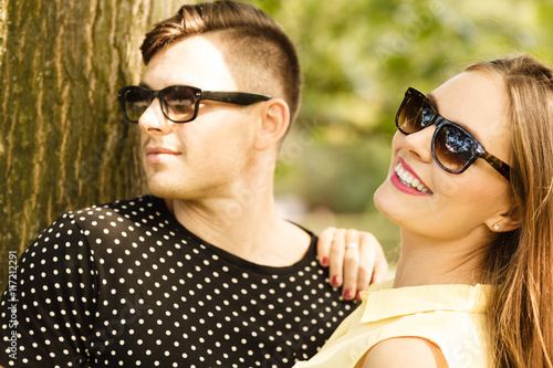 © Voyagerix, Obraz premium Couple in park getting close.