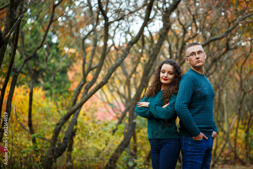 Fototapeta premium Couple in sweaters in the autumn park