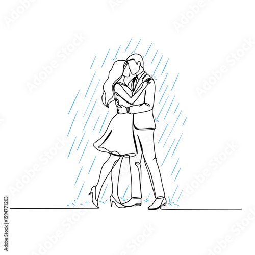 © Anatoly, Fototapeta premium Couple kissing under rain while embracing in a romantic setting