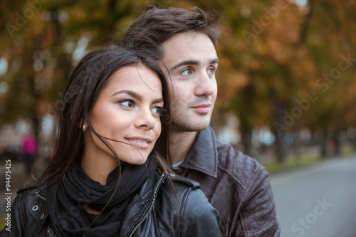Fototapeta premium Couple looking away outdoors