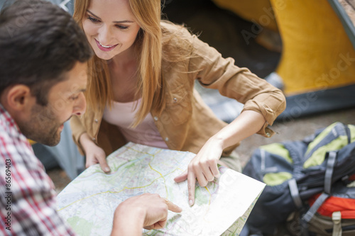 © gpointstudio, Obraz premium Couple lost in the forest