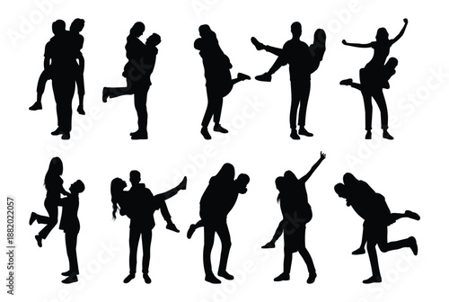 © Ascreator, Obraz premium Couple love silhouette set with romantic poses isolated on white background vector illustration