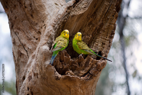 Fototapeta premium Couple of budgerigar parrots on the nest