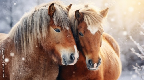 © Sundas, Fototapeta premium couple of house in winter session in snow generated by AI tool