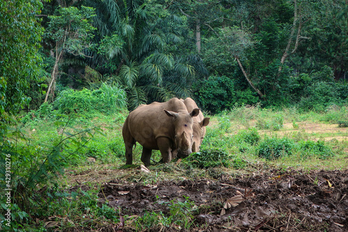 Fototapeta premium Couple of powerful rhinos view, Uganda