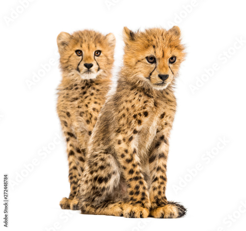 Obraz premium Couple of three months old cheetah cubs, isolated on white