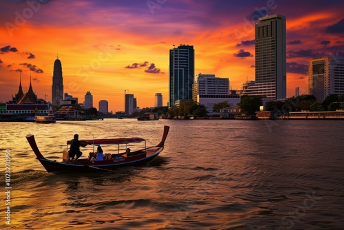 Fototapeta premium Couple on a boat architecture cityscape building.