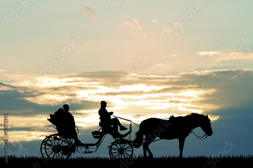 © adrenalinapura, Fototapeta premium couple on carriage ride at sunset