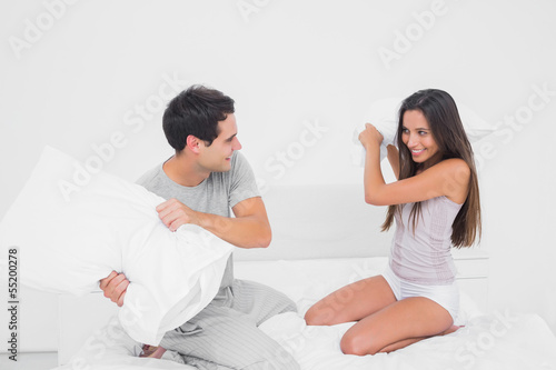 Obraz premium Couple playing and having a pillow fight