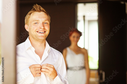 © Mila Supinskaya , Fototapeta premium couple preparing at home for a wedding