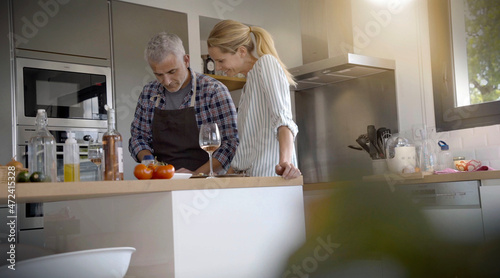 Fototapeta premium couple preparing meal in home kitchen