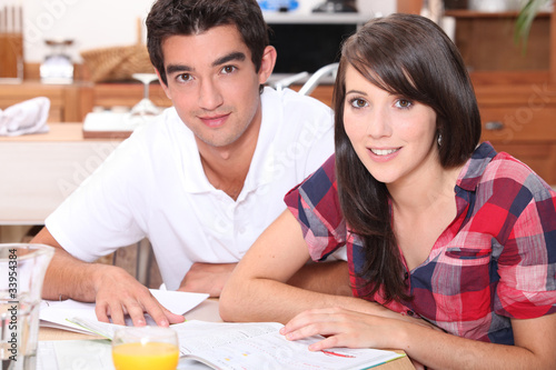 © auremar, Obraz premium Couple reading in kitchen