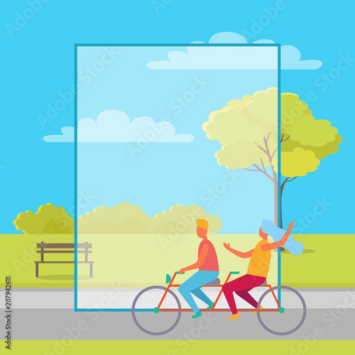 Fototapeta premium Couple Riding Double Bicycle in Summertime Park