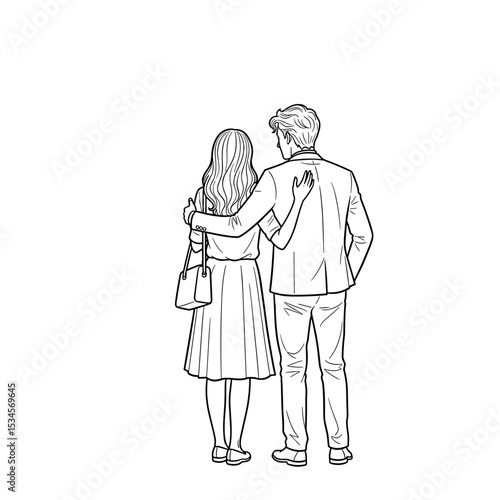 © Albina, Fototapeta premium Couple standing together, embracing each other from behind with a loving posture
