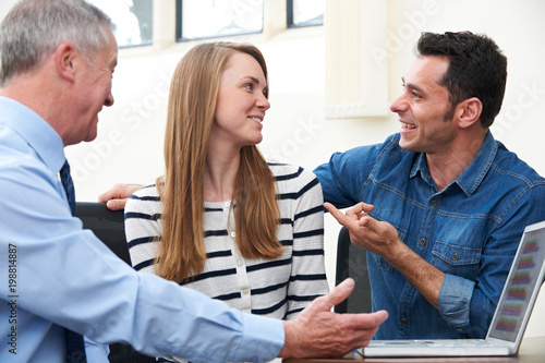 Fototapeta premium Couple Talking With Financial Advisor In Office