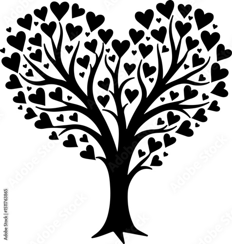 © creative art 99, Fototapeta premium Couple Under Heart Trees Silhouette vector
