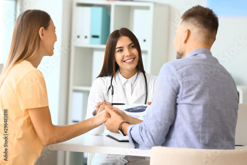 Fototapeta premium Couple visiting female gynecologist in clinic