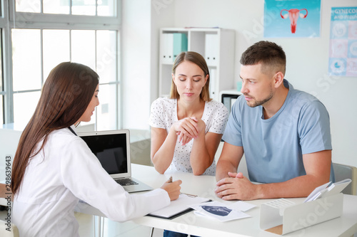 Fototapeta premium Couple visiting female gynecologist in clinic