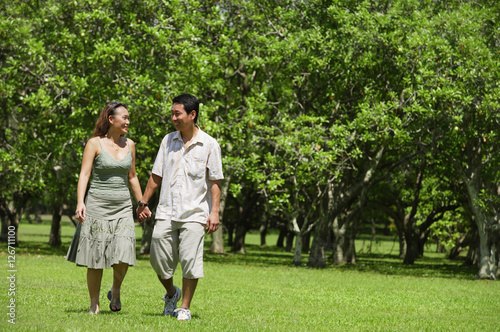 © Alexander, Obraz premium Couple walking in park, holding hands
