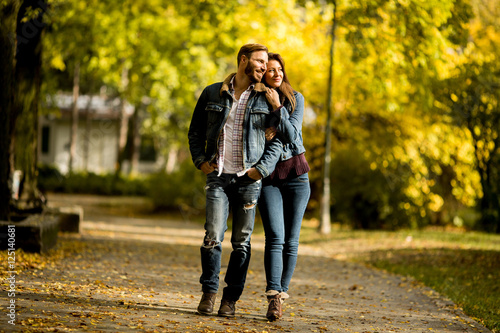 © BGStock72, Fototapeta premium Couple walking in the autumn park