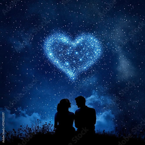 Obraz premium Couple Watching a Starry Sky Silhouette, Valentine’s Day, valentine' silhouette
