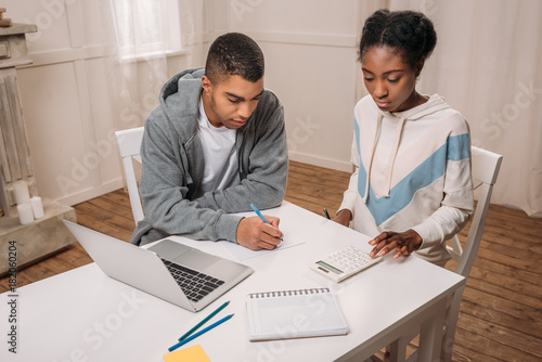 Obraz premium couple with laptop calculating something