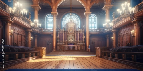 Obraz premium court background with wooden floor and arched window, featuring a brown...