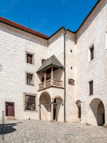 © pyty, Fototapeta premium Courtyard of Ledec Caste, Ledec nad Sazavou, Czech Republic. View from castle tower.