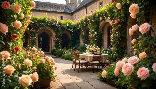 Naklejka premium Courtyard of Roses and Tablescape VUR