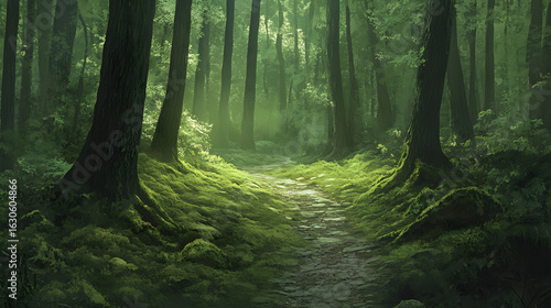 Obraz premium Covered Forest Trail With Jade Tinted Light