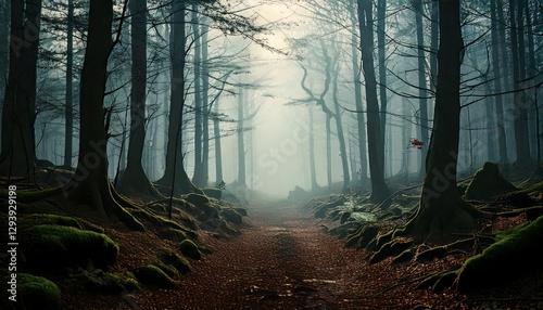 © PandaUniverse, Obraz premium covered forest where every step echoes and unseen creatures