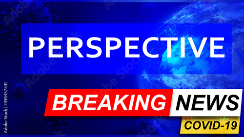 Fototapeta premium Covid and perspective in breaking news - stylized tv blue news screen with news related to corona pandemic and perspective, 3d illustration