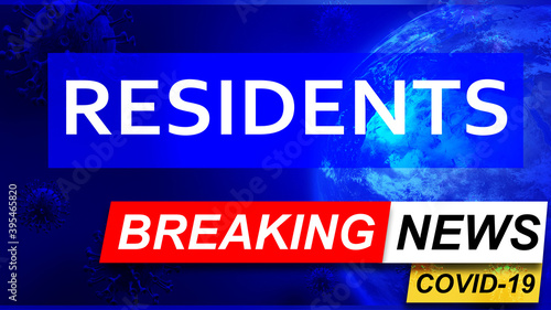 Fototapeta premium Covid and residents in breaking news - stylized tv blue news screen with news...