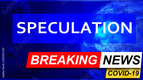 Fototapeta premium Covid and speculation in breaking news - stylized tv blue news screen with...