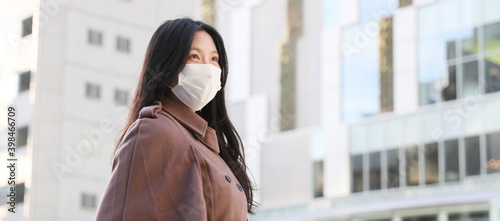Fototapeta premium Covid-19 concept / Asian woman wearing mask in the city