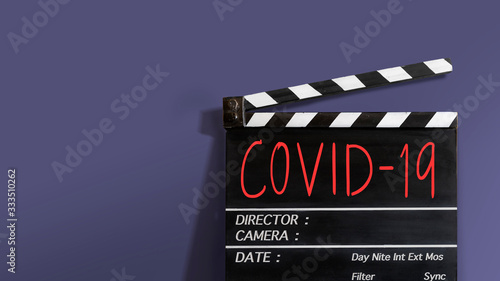 Obraz premium COVID-19 text title on film slate.