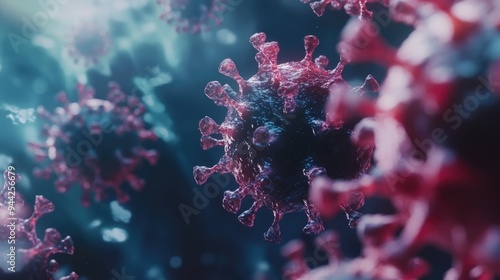 Fototapeta premium COVID 19 virus backdrop featuring harmful cells highlighting serious...
