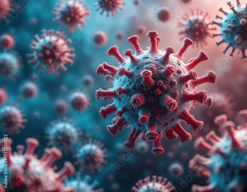 © Vi, Fototapeta premium Covid-19 virus microscopic view scientific illustration digital art abstract background close-up health concept