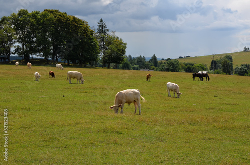 © martin951, Fototapeta premium cow and calf on pasture feeding green grass