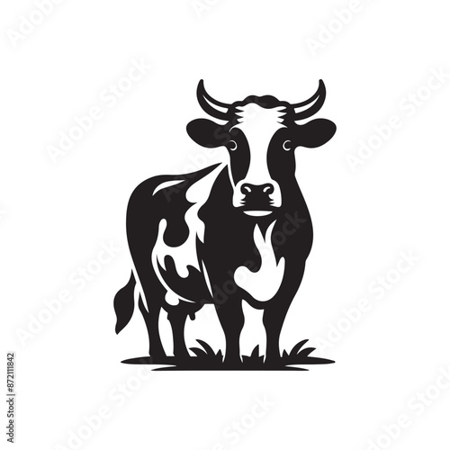 © DESIGNSERVICE, Naklejka premium Cow black silhouette vector icon on White Background