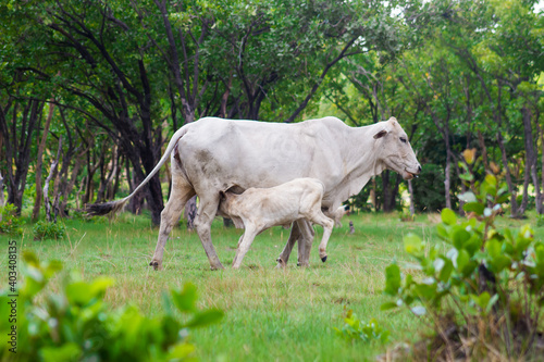 Fototapeta premium cow breast feeding
