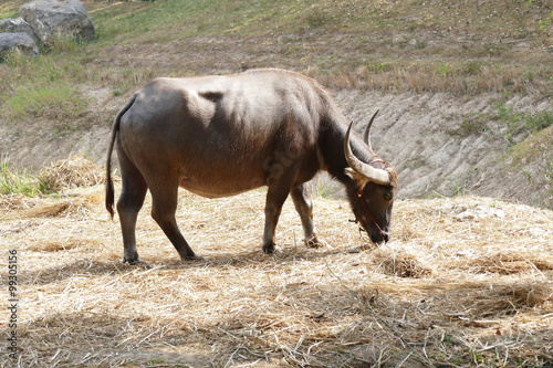Fototapeta premium cow eating straw in farmland