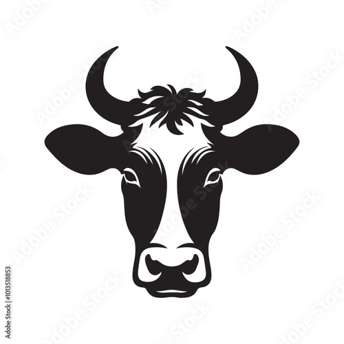 Naklejka premium Cow Head Logo Icon Symbol Silhouette Vector Clip Art Isolated on White...