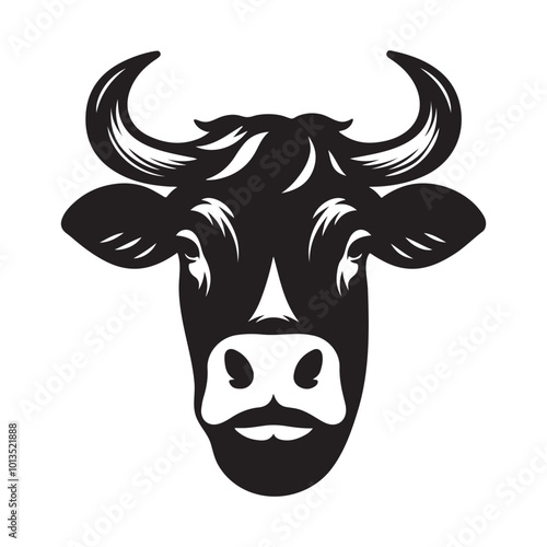 Naklejka premium Cow Head Logo Icon Symbol Silhouette Vector Clip Art Isolated on White...