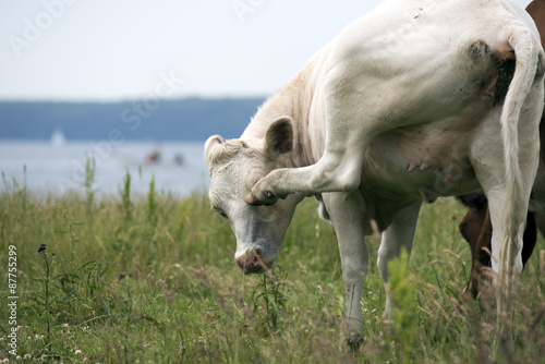 © mema, Obraz premium Cow removes flies