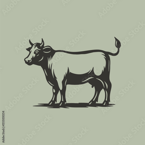 Fototapeta premium Cow side view standing farm animal illustration. Retro vector illustration suitable as a logo, for textile printing or advertising of all kinds.