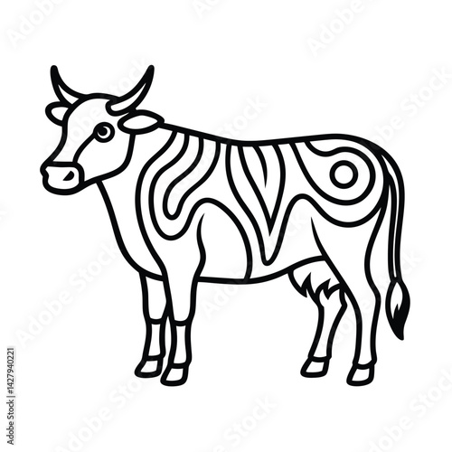 © Tamanna, Obraz premium cow tribal style black line art vector on white background for web and graphic