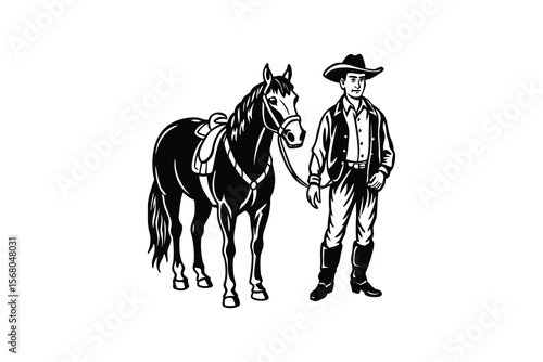 © eisan, Fototapeta premium Cowboy and Horse Silhouette Illustration