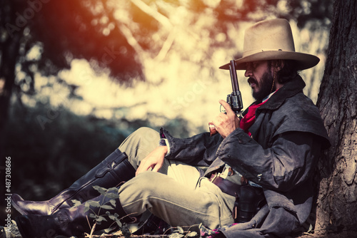 Fototapeta premium cowboy with gun.portrait cowboy.